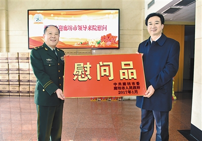 本報(bào)訊(記者 劉杰 周洪娜 劉元琨)新春佳節(jié)臨近,1月18日至19日,馮韶慧、陳平等市領(lǐng)導(dǎo)到駐廊部隊(duì)和軍事院校進(jìn)行走訪慰問,雙方互致新春好,共敘魚水情。 1月18日上午,市委書記馮韶慧,市人大常委會主任劉智廣,市政協(xié)黨組書記李波,市委常委、廊坊軍分區(qū)司令員焦加根,市委常委、常務(wù)副市長賈永清一行輕車簡從,來到武警黃金地質(zhì)研究所、武警黃金第二總隊(duì)、93792部隊(duì)走訪慰問。 馮韶慧代表市四套班子對駐廊部隊(duì)和廣大官兵在過去一年所取得的成績表示祝賀,感謝他們對廊坊經(jīng)濟(jì)社會發(fā)展的大力支持和可靠保障,向他們致以崇高敬意和良好祝愿。馮韶慧說,剛剛過去的一年,在全市上下的共同努力下,在廣大駐廊部隊(duì)官兵的大力支持下,廊坊經(jīng)濟(jì)社會發(fā)展邁上新的臺階,多項(xiàng)主要經(jīng)濟(jì)指標(biāo)增速位居全省首位,各項(xiàng)社會事業(yè)取得長足進(jìn)步,社會保持了和諧穩(wěn)定的可喜局面。這些成績的取得,離不開部隊(duì)官兵的支持和幫助,凝聚著部隊(duì)官兵的心血、智慧和汗水。當(dāng)前,廊坊發(fā)展基礎(chǔ)雄厚、發(fā)展機(jī)遇疊加、發(fā)展勢頭良好、發(fā)展前景廣闊 ,正處于大發(fā)展、快發(fā)展的特殊時期、關(guān)鍵時期。希望廣大駐廊部隊(duì)官兵,深入貫徹落實(shí)習(xí)近平總書記系列重要講話精神和國防建設(shè)、軍民融合等重要指示要求,一如既往地關(guān)心和支持廊坊的經(jīng)濟(jì)社會發(fā)展。我們將始終堅(jiān)持軍政軍民團(tuán)結(jié),全力幫助和解決駐廊部隊(duì)在發(fā)展中面臨的困難和問題,通過軍地雙方共同攜手努力,再創(chuàng)廊坊雙擁工作新水平,為推進(jìn)廊坊發(fā)展走在全省前列、加快建設(shè)創(chuàng)新驅(qū)動經(jīng)濟(jì)強(qiáng)市作出新的更大貢獻(xiàn)。 1月19日下午,市長陳平,市委副書記、副市長胡曉軍,市政協(xié)主席鄭廣富,廊坊軍分區(qū)政委呂雙平,副市長王俊臣,市政府秘書長張矛先后到廊坊陸軍預(yù)備役后勤保障旅、中國人民武裝警察部隊(duì)學(xué)院、南京炮兵學(xué)院廊坊校區(qū)、廊坊軍分區(qū)進(jìn)行慰問,向部隊(duì)官兵致以誠摯的問候和新春的祝福。 每到一處,陳平都與在場官兵一一握手,與大家親切交流部隊(duì)的工作、生活、學(xué)習(xí)等情況,對廣大官兵在政治學(xué)習(xí)、軍事訓(xùn)練等方面取得的成績表示祝賀,對他們?yōu)榇龠M(jìn)廊坊經(jīng)濟(jì)社會發(fā)展、維護(hù)社會和諧穩(wěn)定作出的突出貢獻(xiàn)表示感謝。他說,近年來,廣大駐廊部隊(duì)官兵充分發(fā)揮人民子弟兵作用,關(guān)鍵時刻拉得出、沖得上、打得贏。特別是去年夏天,我市防洪形勢嚴(yán)峻,危難之際廣大官兵無私奉獻(xiàn)、沖鋒在前,最大限度保護(hù)了廊坊人民群眾生命財(cái)產(chǎn)安全,體現(xiàn)了部隊(duì)良好的戰(zhàn)斗作風(fēng)和擁政愛民的良好品德。新的一年,希望部隊(duì)官兵繼續(xù)發(fā)揮自身優(yōu)勢,關(guān)心、支持和參與地方建設(shè),為廊坊經(jīng)濟(jì)發(fā)展、社會和諧穩(wěn)定以及民生改善、文化繁榮作出新的更大貢獻(xiàn)。市委、市政府將一如既往地為廣大官兵提供保障和服務(wù),不斷鞏固發(fā)展軍民魚水關(guān)系,促進(jìn)國防建設(shè)與經(jīng)濟(jì)建設(shè)協(xié)調(diào)發(fā)展。 1月19日上午,市委副書記、組織部長、統(tǒng)戰(zhàn)部長李龍,廊坊軍分區(qū)參謀長臧志偉先后到武警廊坊市支隊(duì)、市公安消防支隊(duì)、61906部隊(duì)進(jìn)行走訪慰問。“拜個早年,祝大家春節(jié)快樂!”李龍來到駐地,與官兵們一一握手,互致問候,并代表市委、市政府向?yàn)槔确唤?jīng)濟(jì)社會發(fā)展作出貢獻(xiàn)的駐廊部隊(duì)表示衷心感謝和崇高敬意。他說,過去一年,駐廊各部隊(duì)踴躍奮戰(zhàn)在經(jīng)濟(jì)社會發(fā)展第一線,廊坊取得的各項(xiàng)成績都離不開部隊(duì)的大力支持。希望官兵們繼續(xù)發(fā)揚(yáng)能吃苦、能戰(zhàn)斗的優(yōu)良傳統(tǒng),一如既往地支持廊坊經(jīng)濟(jì)社會各項(xiàng)建設(shè),為維護(hù)社會穩(wěn)定、促進(jìn)經(jīng)濟(jì)發(fā)展、保障人民群眾安居樂業(yè)作出更大貢獻(xiàn)。 |