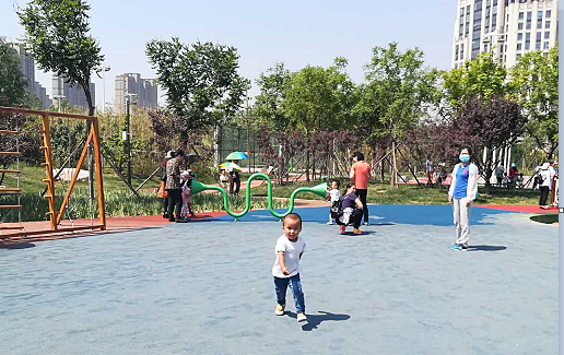 滿眼綠色,觸手可及。鄰居好友相聚消暑、談天說地;兒童樂園歡聲笑語,甚是快活。