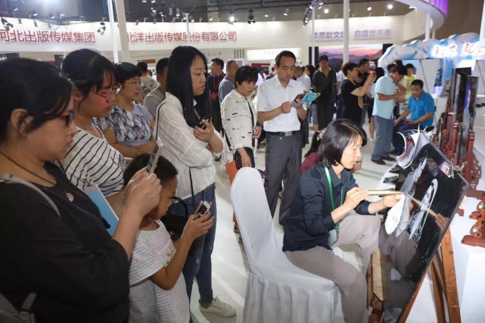 北洋君看到方士英的丈夫在書博會的展區(qū)上忙里忙外,一會兒當(dāng)講解員為觀眾介紹作品,一會兒又把作品整理下……而方士英,則專心致志地在嘈雜的展區(qū)一下一下地敲擊作品。