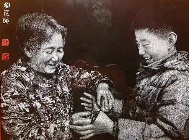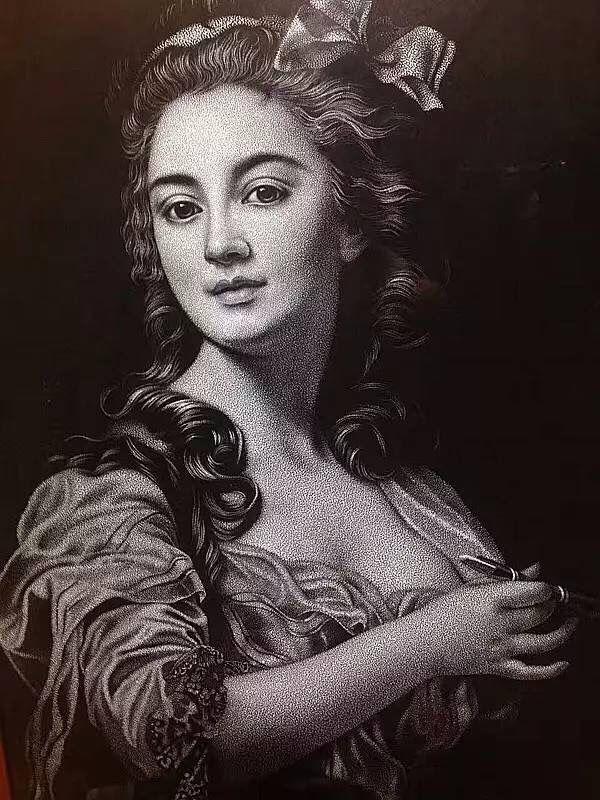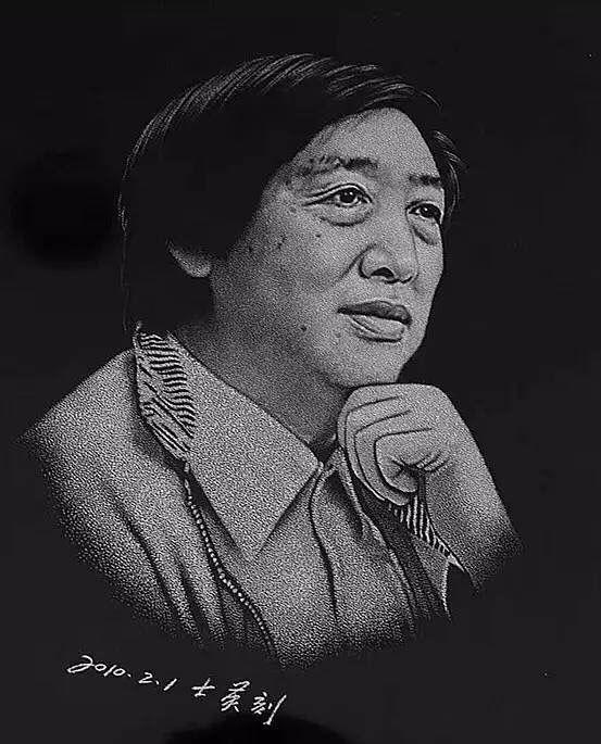 她說,人物的面部表情和立體感是靠黑白灰來體現(xiàn),黑白灰是靠手腕上的力度來掌握,力度的大小要用心和眼睛來控制,必須心手合一,恰到好處。每次做人物眼睛時必須全神貫注甚至是高度緊張,每個細節(jié)都必須是一氣呵成。稍有一丁點兒不慎,就嚴重影響了人物的面目表情,一旦出錯便無法修補。