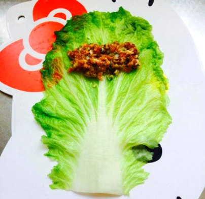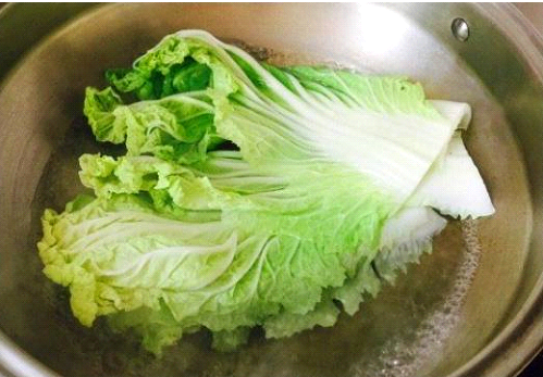 鋪上一張白菜葉子,