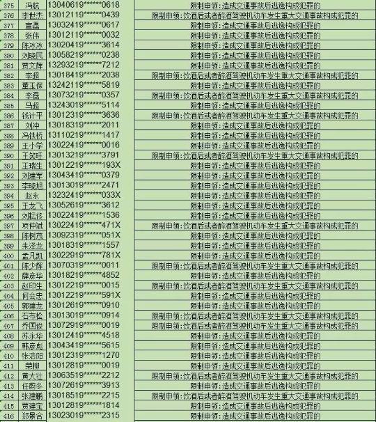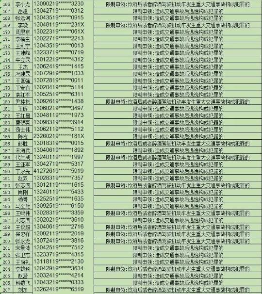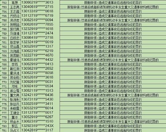 此次公布的被終生禁駕的781人中,有175人是因飲酒后或者醉酒駕駛機(jī)動(dòng)車發(fā)生重大交通事故構(gòu)成犯罪被終生禁駕,606人是因交通事故后逃逸構(gòu)成犯罪被終生禁駕。