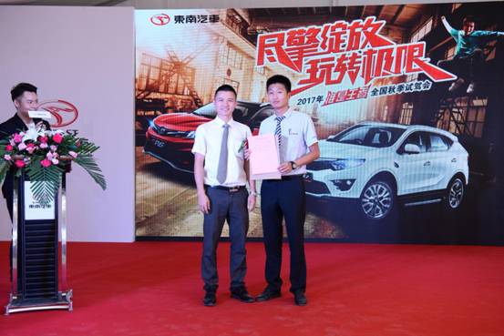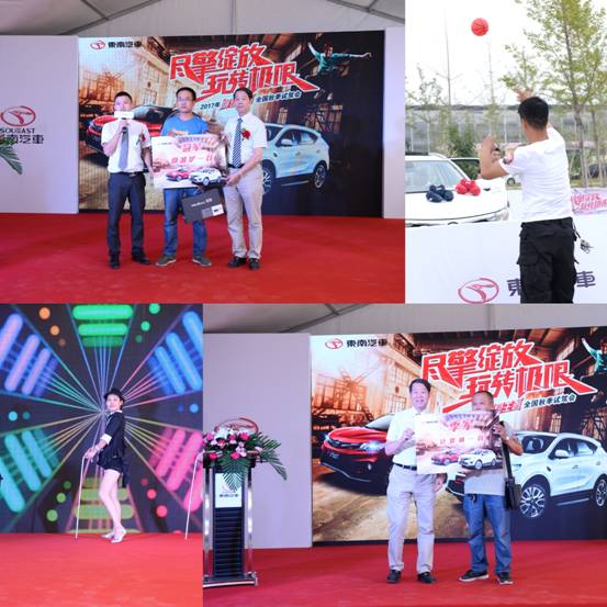專業(yè)車手精彩絕倫的雙車特技表演之后,現(xiàn)場來賓開啟試駕體驗(yàn)活動(dòng)。試駕科目包括直線加速、緊急避讓、緊急制動(dòng)、天窗投籃和盲駕入庫等一系列的試駕動(dòng)作。試駕結(jié)束后,根據(jù)試駕成績,總成績排名前三的來賓分別獲得了主辦方提供的精美禮品一份,同時(shí)試駕冠軍也獲得了10月22日滄州總決賽資格,總冠軍將贏取東南DX3一年使用權(quán)!這一系列的試駕體驗(yàn)不僅考驗(yàn)來賓的操控技術(shù),更是對(duì)新款東南DX7的全方位考驗(yàn)。
