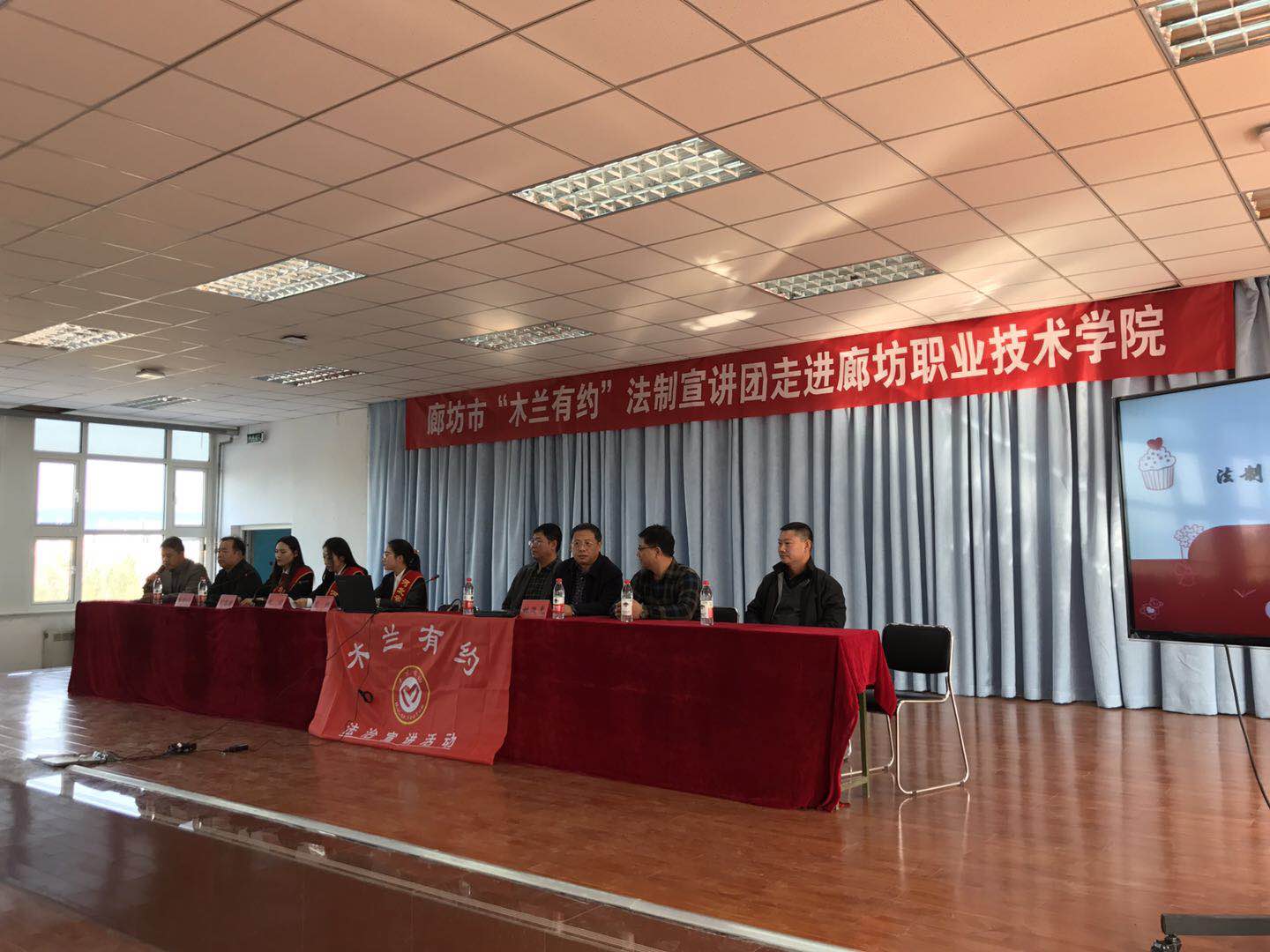 11月1日下午,我市“木蘭有約”法治宣講團在廊坊職業(yè)技術學院開展“送法進校園,關愛青少年”法制宣講活動。