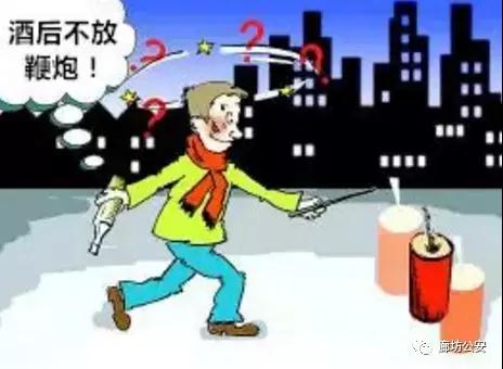 酒后燃放爆竹和酒后駕駛一樣危險。過節(jié)大家都喜歡喝點(diǎn)酒,但是喝完酒除了不能開車以外,同樣不能燃放煙花爆竹。燃放煙花爆竹本身就存在一定危險性,人喝酒之后,判斷力下降,反應(yīng)速度會遲緩,燃放爆竹就更易發(fā)生危險。
