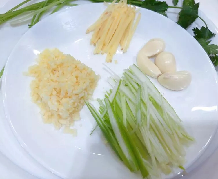 2/將蔥、姜、青紅辣椒絲擺上,倒入蒸魚豉油即可
