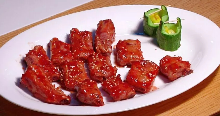 色澤鮮艷且軟嫩多汁的叉燒排骨就上桌了~