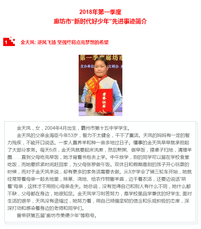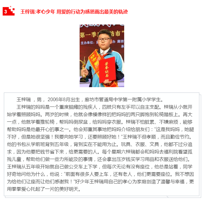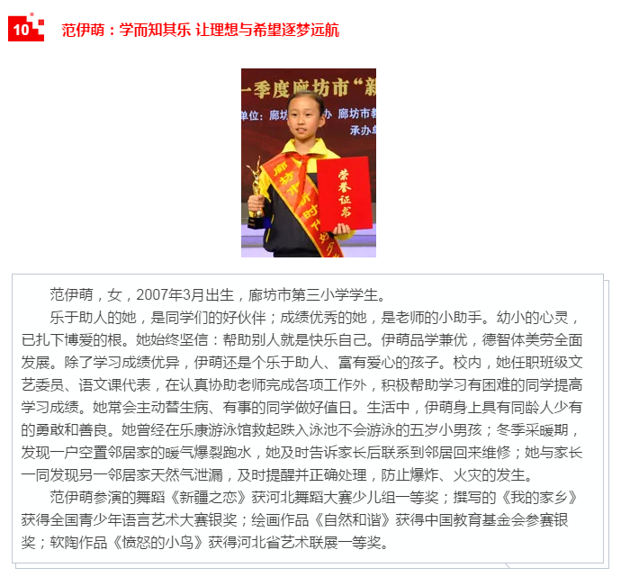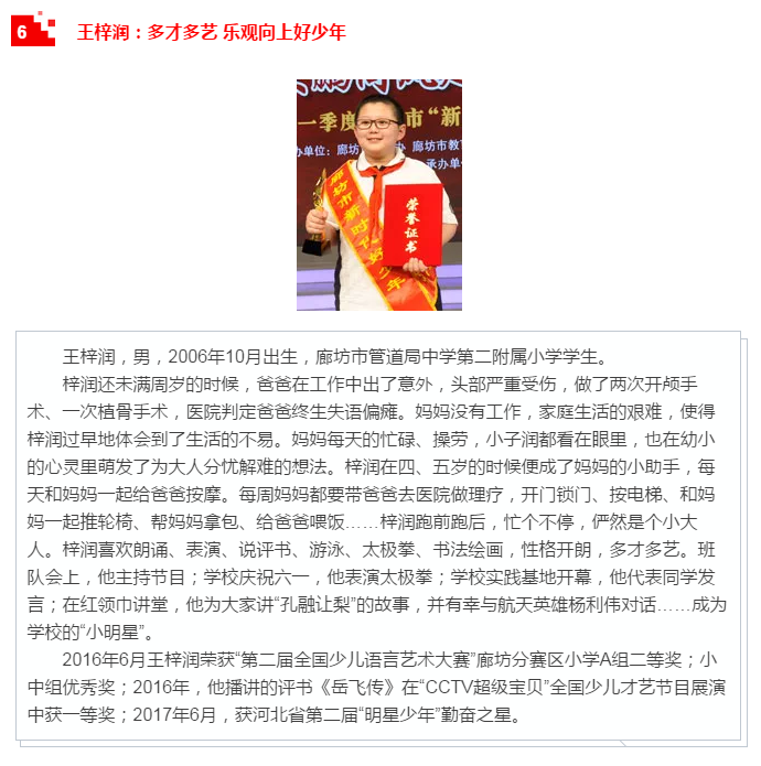 本次活動由廊坊市文明辦、市教育局、團市委、市婦聯(lián)、市關工委主辦,共向全市發(fā)布了十位“新時代好少年”先進事跡。