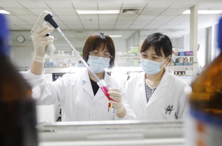 6月3日,在固安縣肽谷生物醫(yī)藥產(chǎn)業(yè)園一家醫(yī)藥研發(fā)企業(yè),工作人員在進(jìn)行醫(yī)藥研發(fā)。新華社記者駱學(xué)峰 攝