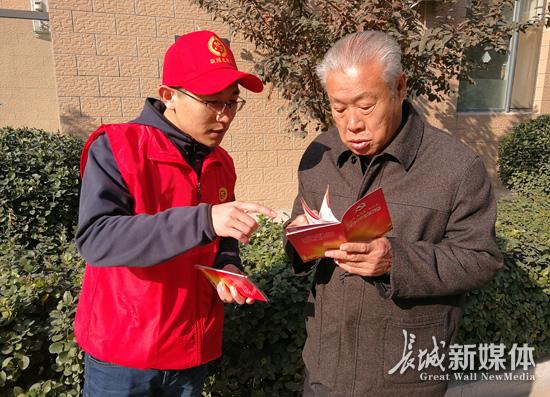 11月4日,廊坊市直、中省直駐廊各機關、企事業(yè)單位的萬名黨員志愿者深入到全市各個街道、社區(qū)、廣場開展“星期六文明行動”。黨員志愿者們一邊開展志愿服務,一邊將《圖解十九大報告》口袋書以及十九大精神學習資料送到千家萬戶。這種星期六宣講活動已成為近期該市宣傳十九大精神的新常態(tài)。