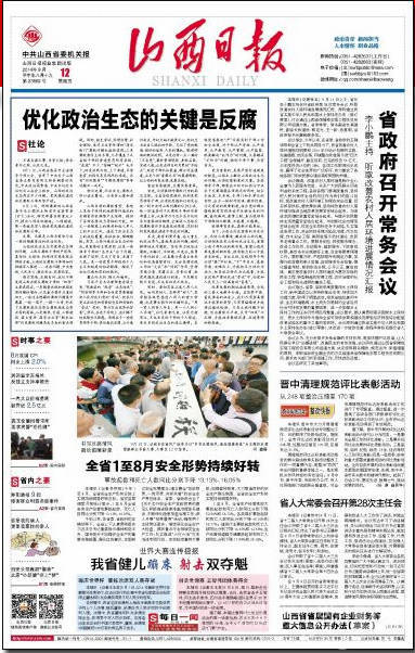 《山西日報》今日頭版