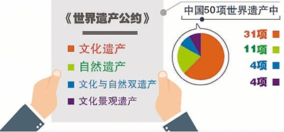 加入《公約》30多年來,中國積極開展遺產(chǎn)申報(bào)和保護(hù),已成為世界遺產(chǎn)數(shù)量增長最快的國家之一。從2003年起,中國連續(xù)14年每年都有項(xiàng)目成功入選世界遺產(chǎn)名錄。隨著今年又有2個(gè)項(xiàng)目申遺成功,中國的世界遺產(chǎn)數(shù)量增至50項(xiàng),其中,世界文化遺產(chǎn)35項(xiàng)(其中4項(xiàng)為文化景觀遺產(chǎn)),世界自然遺產(chǎn)11項(xiàng),文化與自然雙重遺產(chǎn)4項(xiàng)。