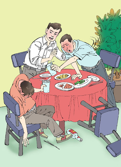 劉冰今年24歲,雖說年紀(jì)不大,也已久經(jīng)酒場(chǎng)。“大學(xué)里常和朋友兄弟一起聚餐,男孩子們聚在一起總要喝上幾杯,那時(shí)候就感受到勸酒的厲害。”劉冰表示,大學(xué)里的勸酒都是以感情為由沒辦法拒絕,“那會(huì)兒脾氣大,還會(huì)因?yàn)閯窬瞥臣堋?rdquo;