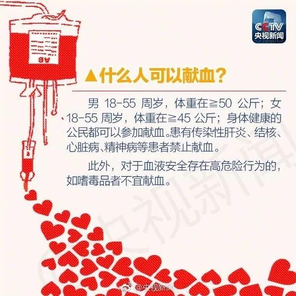 我們國家現(xiàn)在所接受的合法獻(xiàn)血的年齡是18歲到55歲,獻(xiàn)血者需要身體健康,體重、血壓正常,沒有經(jīng)血液傳播的疾病。