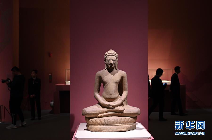 這是展出的柬埔寨國家博物館藏的佛像(4月11日攝)。當(dāng)日,中國國家博物館聯(lián)合12個國家博物館共同舉辦的“殊方共享——絲綢之路國家博物館文物精品展”在北京中國國家博物館開幕。展覽通過各個時期、不同門類的234件(套)文物,展示國家之間豐富多樣的文化交流。