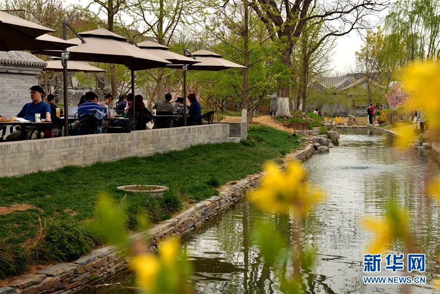 市民在三里河綠化景觀休閑(4月6日攝)。新華社發(fā)(任超 攝)