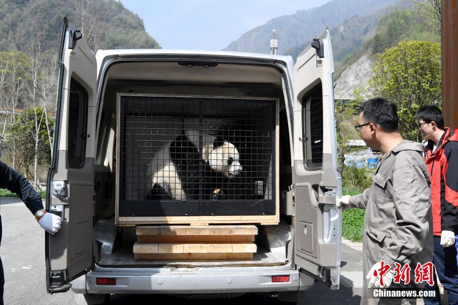 大熊貓“園園”在等待出發(fā)。