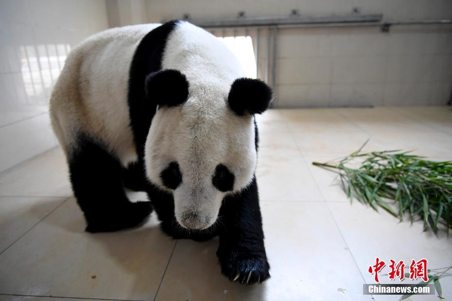 在隔離檢疫獸舍等待啟程的大熊貓“園園”。