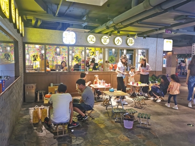 記者多次來到合生匯探訪,發(fā)現(xiàn)此處“深夜食堂”的客流量越來越大。晚上9點(diǎn)多,不僅是地下一層和二層的“深夜食堂”,地上五層的餐飲區(qū)也一直客流不斷,燈火通明。