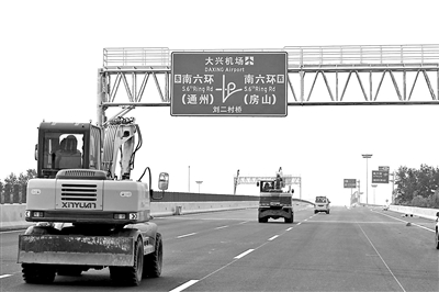 大興機(jī)場(chǎng)高速將于6月底建成,工人正在進(jìn)行收尾工作 攝影/本報(bào)記者 黃亮