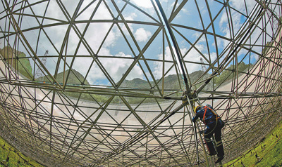 8月28日,工作人員在對(duì)“中國(guó)天眼”進(jìn)行檢修。