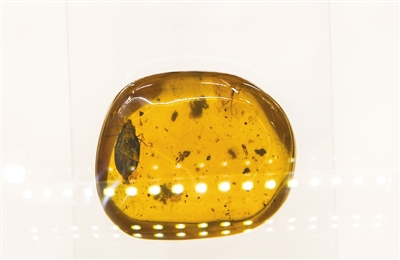 12月23日,中關(guān)村圖書大廈石探記博物科學(xué)館,展出琥珀內(nèi)發(fā)現(xiàn)的新物種——齒胸波眼甲。新京報(bào)記者 陶冉 攝