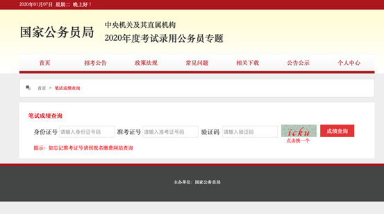 筆試成績查詢界面截圖(來源:國家公務(wù)員局網(wǎng)站)