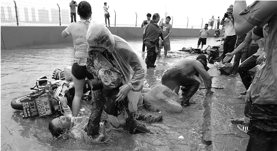 路面一下子水漫金山,潮水一時(shí)很難退下去。