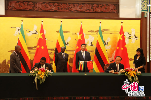 習近平與穆加貝出席中津旅游合作文件簽字儀式