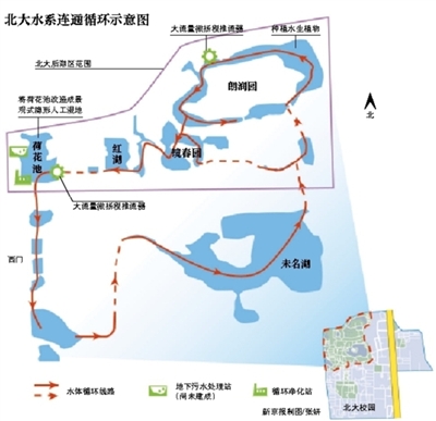 總體規(guī)劃方案的設(shè)計(jì)方北京市水科學(xué)技術(shù)研究院副總工程師黃炳彬稱:“此次工程主要是進(jìn)行北大的水系連通、循環(huán)及水質(zhì)保障。以再生水為主要水源,用人工濕地對(duì)再生水進(jìn)行進(jìn)一步深度凈化,然后溝通水系,實(shí)現(xiàn)各湖區(qū)互聯(lián)互通。利用污水收集、處理及回用,充分提升水資源利用效率、節(jié)約清水;建設(shè)透水鋪裝、雨水管線、雨水收集蓄水池,利用雨水資源,構(gòu)建綠色海綿校園,使水資源循環(huán)利用、水系連通流動(dòng)、水質(zhì)生態(tài)凈化有機(jī)結(jié)合,促進(jìn)校園水系微循環(huán),恢復(fù)歷史名校風(fēng)貌。”