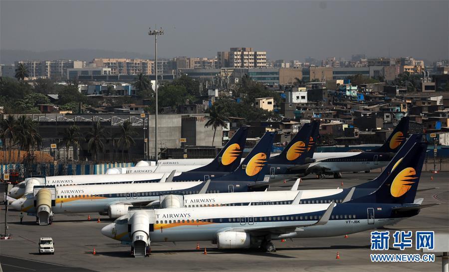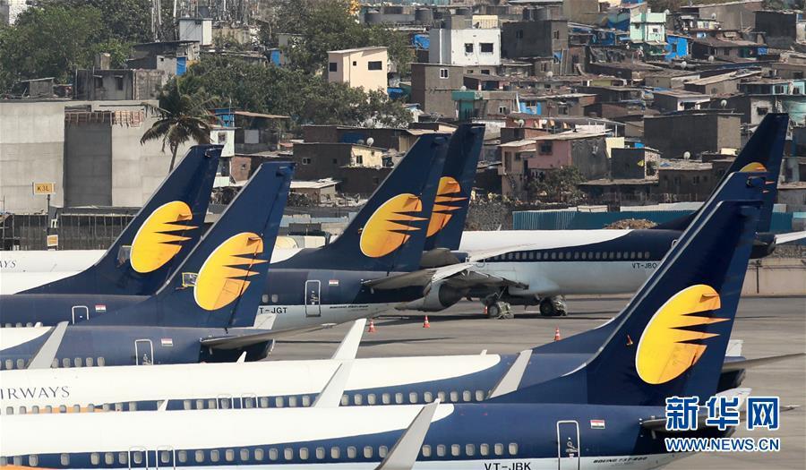 4月18日,在印度孟買,印度捷特航空公司的飛機(jī)停在孟買賈特拉帕蒂⋅希瓦吉國(guó)際機(jī)場(chǎng)的停機(jī)坪上。 由于未能按計(jì)劃獲得過渡資金,債務(wù)纏身的印度捷特航空公司17日晚宣布,在飛完當(dāng)天最后一趟航班后,其國(guó)內(nèi)外航班將全面停飛。