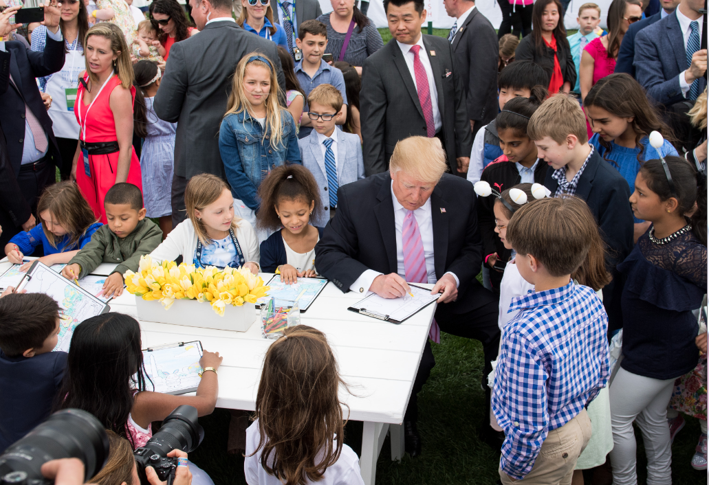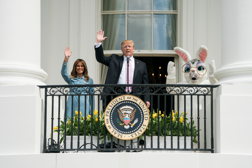 當?shù)貢r間2019年4月22日,美國華盛頓,美國總統(tǒng)特朗普和妻子梅拉尼婭在白宮舉行一年一度的復(fù)活節(jié)滾彩蛋活動。 特朗普站在陽臺上對人群說,美國目前發(fā)展非常不錯,失業(yè)率史上最低,減稅和軍隊重建也取得好成績,美國制造也出產(chǎn)了許多好產(chǎn)品。
