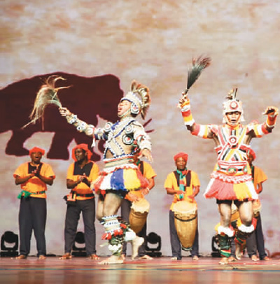 4月21日晚,“歡聚時(shí)刻——紀(jì)念中國-贊比亞文化年開幕暨中贊建交55周年文藝晚會(huì)”在北京舉辦。文化和旅游部部長雒樹剛和贊比亞旅游與藝術(shù)部部長查爾斯·班達(dá)出席活動(dòng)并致辭。圖為贊比亞藝術(shù)家在晚會(huì)上表演。