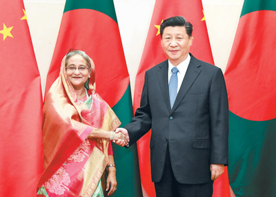 習(xí)近平指出,中國和孟加拉國是傳統(tǒng)友好鄰邦。我2016年對貴國進(jìn)行國事訪問時(shí),將兩國關(guān)系提升為戰(zhàn)略合作伙伴關(guān)系,推動(dòng)雙邊交流合作步入快速發(fā)展的新階段,為各自國家經(jīng)濟(jì)社會(huì)發(fā)展注入了新的動(dòng)力,也為兩國人民帶來了更多福祉。當(dāng)前,中孟都處在各自發(fā)展的關(guān)鍵階段。鞏固好、發(fā)展好戰(zhàn)略合作伙伴關(guān)系,不僅符合兩國和兩國人民共同利益,也有利于亞洲繁榮穩(wěn)定和世界開放合作。