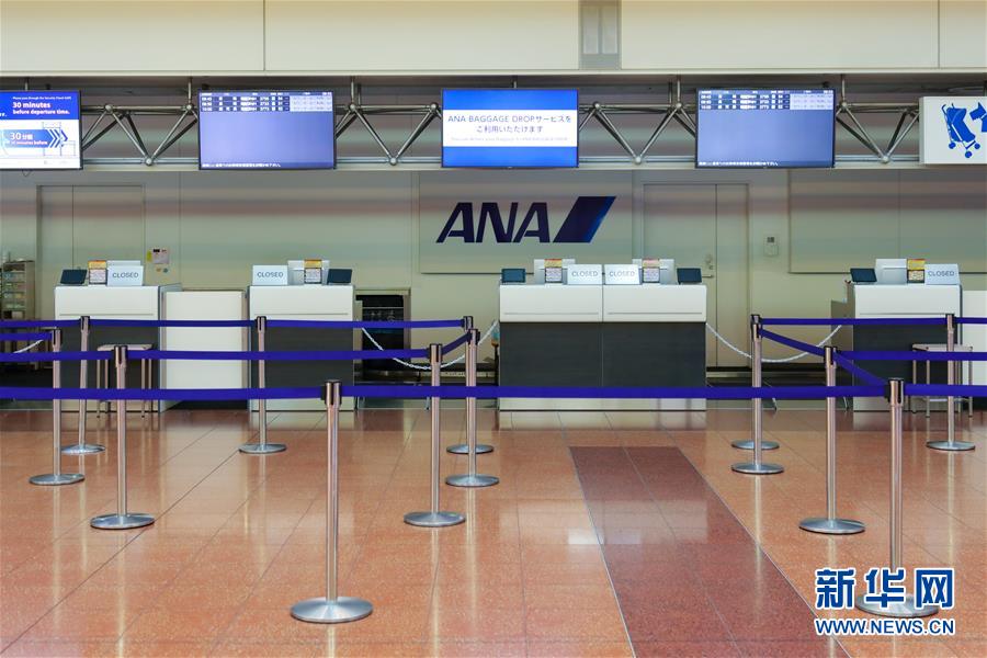 10月12日,在日本東京羽田機場,全日空(ANA)的一個柜臺停止辦理業(yè)務。新華社記者 馬曹冉 攝