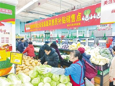 1月16日,市民在元辰超市肉菜惠民補(bǔ)貼銷售點(diǎn)購(gòu)買蔬菜。記者任曉燕攝